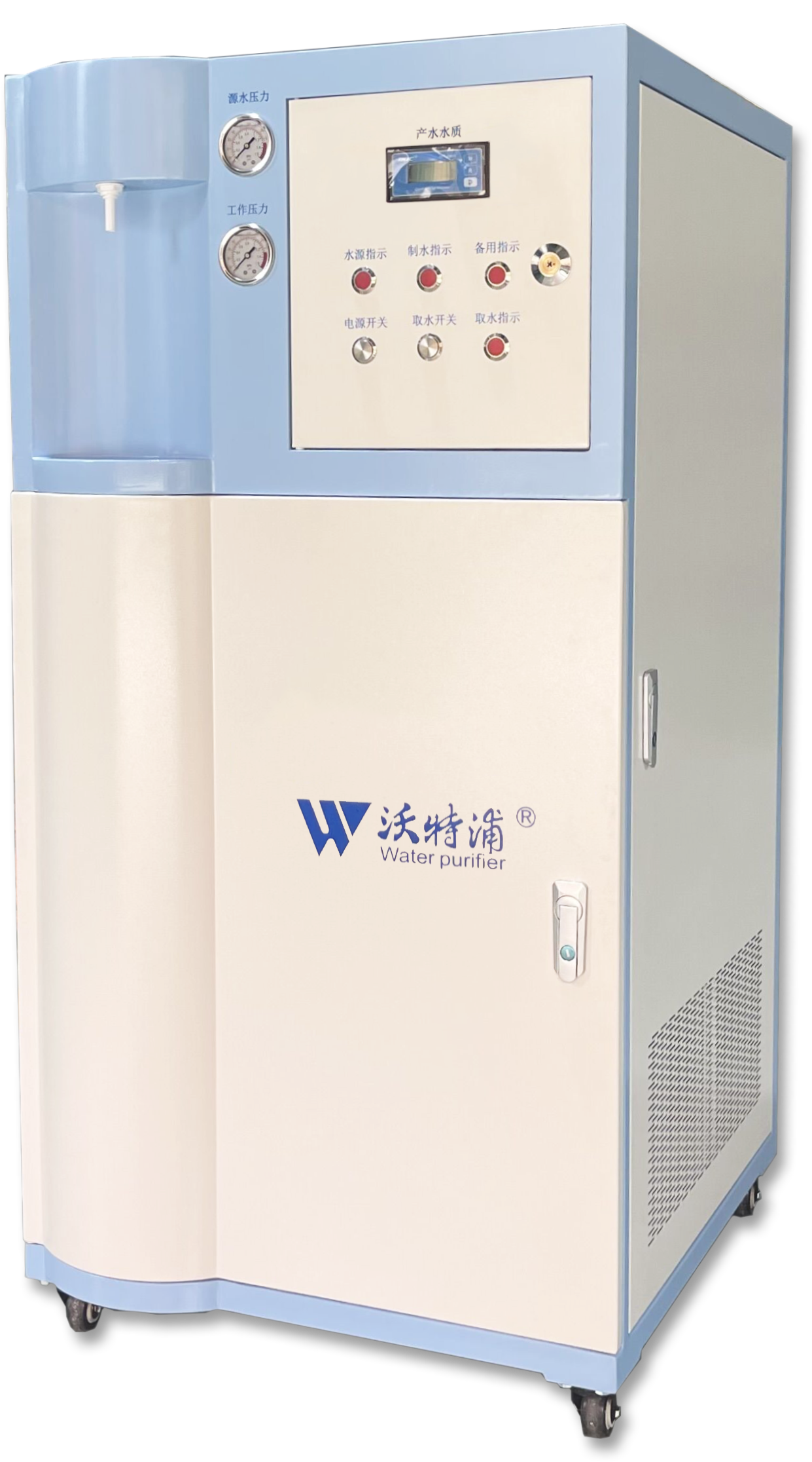 6.配備內置純水箱1個,容積為100升,食品級PE材質,水箱內設置有高、中、低三檔液位控制器,主機與水箱之間的設備連接不僅實現聯動,同時保護輸送泵不至空轉而損壞;